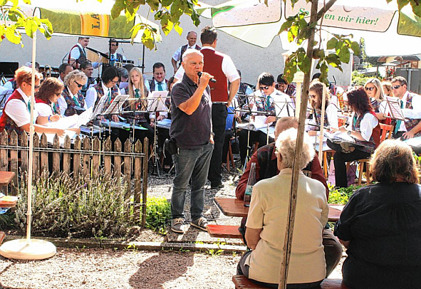 Schon dicht gedrängt saßen die zahlreichen Gäste im Kronegarten in Tegernau, als Hans Viardot um 11 Uhr am Sonntag den „Tag des offenen Denkmals“ im Wirtshausmuseum „Krone“ eröffnete. Zum Frühschoppenkonzert begrüßte schon zum zwanzigsten Mal der Musikverein Tegernau, der im Jahr 1900 in eben dieser „Krone“ gegründet worden war und ihr seitdem die Treue hält. Bei den Führungen im Wirtshausmuseum, das wegen seiner umfangreichen Dokumentation an historischen Fotografien „das Haus der tausend Bilder“ genannt wird, schlossen sich zahlreiche Besucher an, die zum erste Mal in der „Krone“ waren. In seiner Führung schilderte Hans Viardot die Geschichte der „Krone“, die nach dem Tod der letzten Wirtin, der „Kallfass-Luis“, nach umfangreichen Sanierungen vom Verein zur Erhaltung des Wirtshauses „Zur Krone“ wieder eröffnet worden war. Die „Krone“ besteht als Gastwirtschaft seit Februar 1735. Das Gebäude der „Krone“ ist sicher älter und es wird vermutet, dass es schon im zwölften Jahrhundert bestand, denn das im Gebäude gefundene „Krone“-Fläschchen wurde von Fachleuten auf das zwölfte Jahrhundert datiert. Im Gasthaus werden zur Zeit reiche Foto-Dokumentationen gezeigt, die Bilder aus dem Kleinen Wiesental aus vergangenen Zeiten zeigen. Neben einer Dokumentation von Fotos der alten Gasthäuser der früher selbständigen acht Einzelgemeinden, besteht eine Sammlung von Bild-Postkarten der bekannten Schwarzwaldmaler mit Bildern von Schwarzwaldhäusern und Naturlandschaften. „Diese Bilder geben den Schwarzwald als Sehnsuchstort wieder“, erklärte Hans Viardot bei seiner Führung. Die Wirklichkeit aber war eine andere, wie Hans Viardot im Detail erläuterte. Davon geben Fotografien vom Alltag der Menschen im Kleinen Wiesental Zeugnis, die sich ebenfalls im Wirthausmuseum finden. Die genannten Ausstellungen werden durch Bild- und Schriftzeugnisse aus der Zeit um den Ersten und Zweiten Weltkrieg erweitert und vertieft. Die Besucher waren von der Zahl und der Qualität der Ausstellungen nachhaltig beeindruckt und verlangten immer wieder nähere Aufschlüsse zu einzelnen der dargestellten Bilder. Das Wirtshaumuseum „Krone“ hat mit diesem Denkmaltag und seinen Ausstellungen, seinem Anspruch „ein lebendes Museum“ zu sein, wieder alle Ehre gemacht.