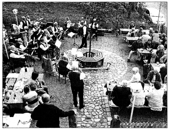 Rentnerband im „Kronen-Garten Alphorn-Solo als Bonbon /Gerhard Wagner half beim Bedienen